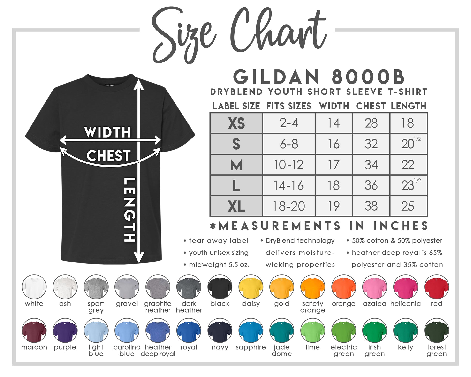 - All youth shirts are made with a comfortable 50/50 cotton/poly blend for softness and durability.
